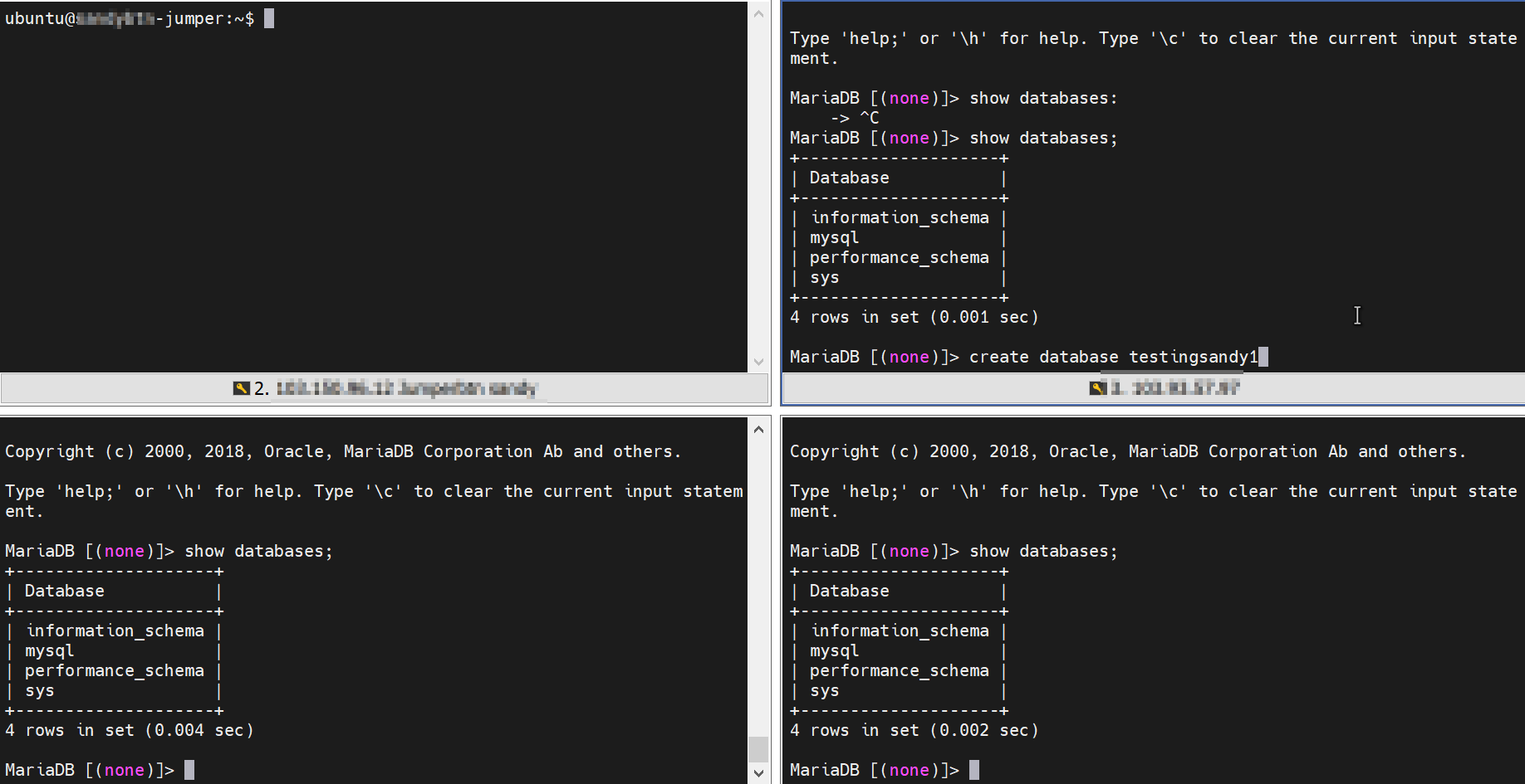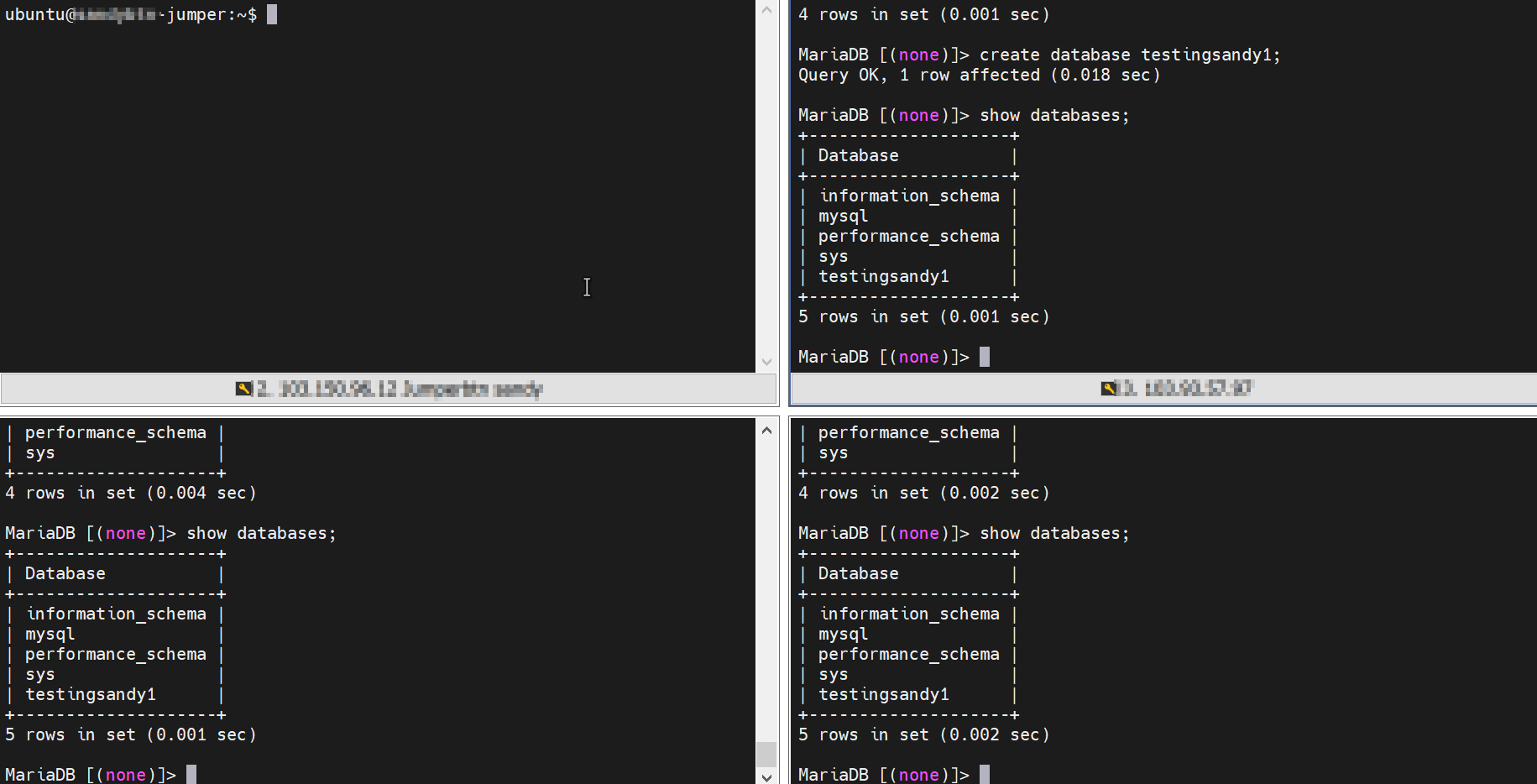 The last one can check the results of the database replication on both nodes (nodes 2 and 3), here are the results