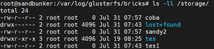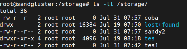 After installing mounting hte volume, now you can try create file from client, like example touch <file_name> , here is the following result on node 1 and node 2, we can see the file created from glusterclient is being replicated on both node.