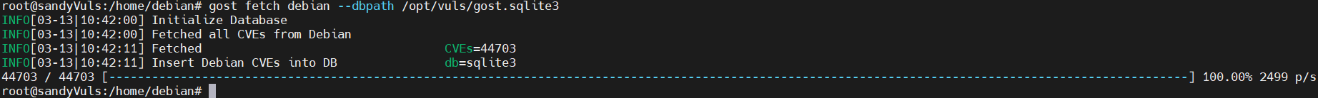 gost fetch debian --dbpath /opt/vuls/gost.sqlite3