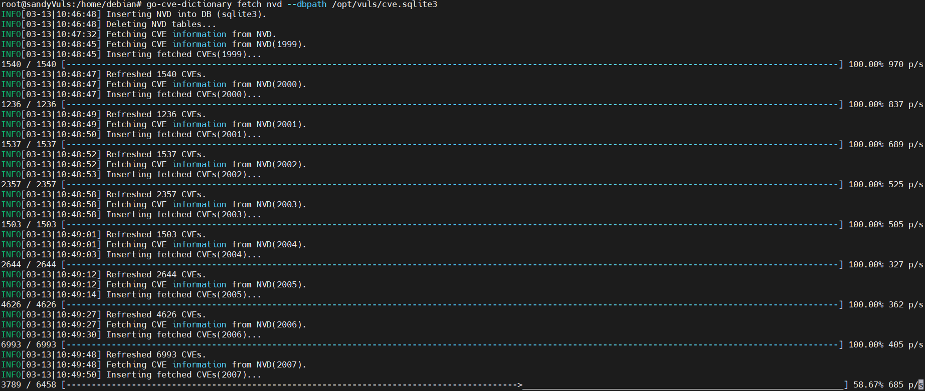 go-cve-dictionary fetch nvd --dbpath /opt/vuls/cve.sqlite3