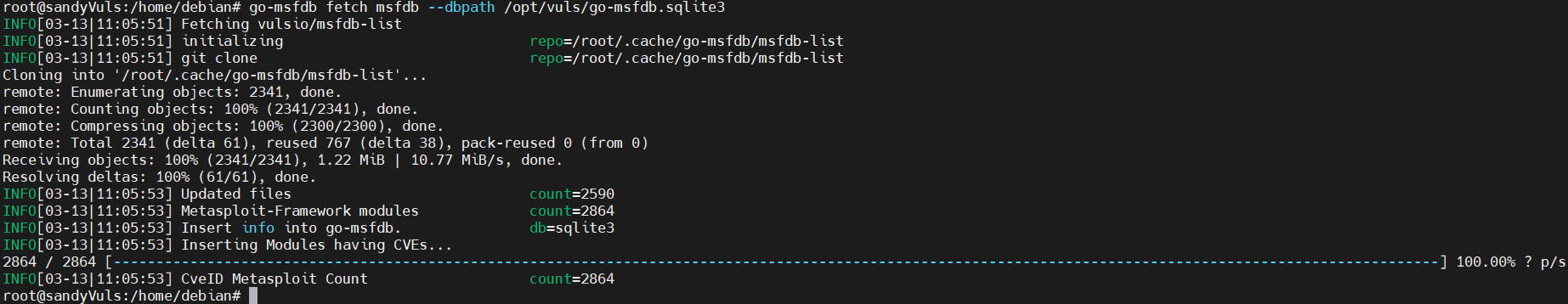 go-msfdb fetch msfdb --dbpath /opt/vuls/go-msfdb.sqlite3