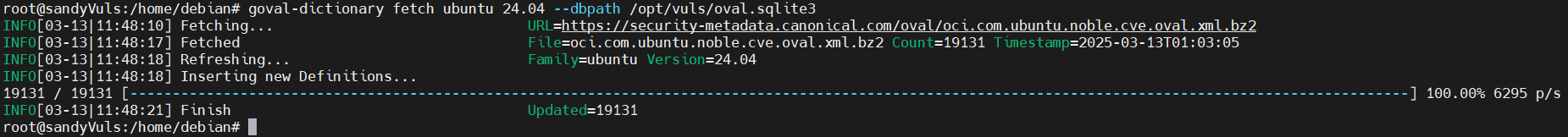 goval-dictionary fetch ubuntu 24.04 --dbpath /opt/vuls/oval.sqlite3