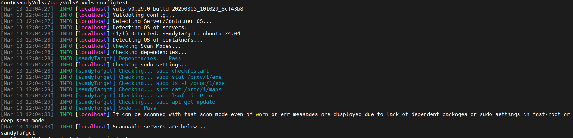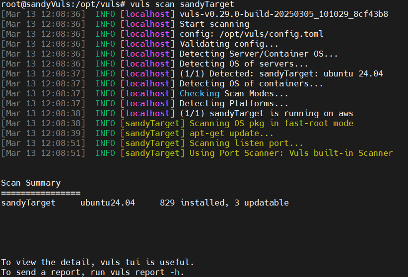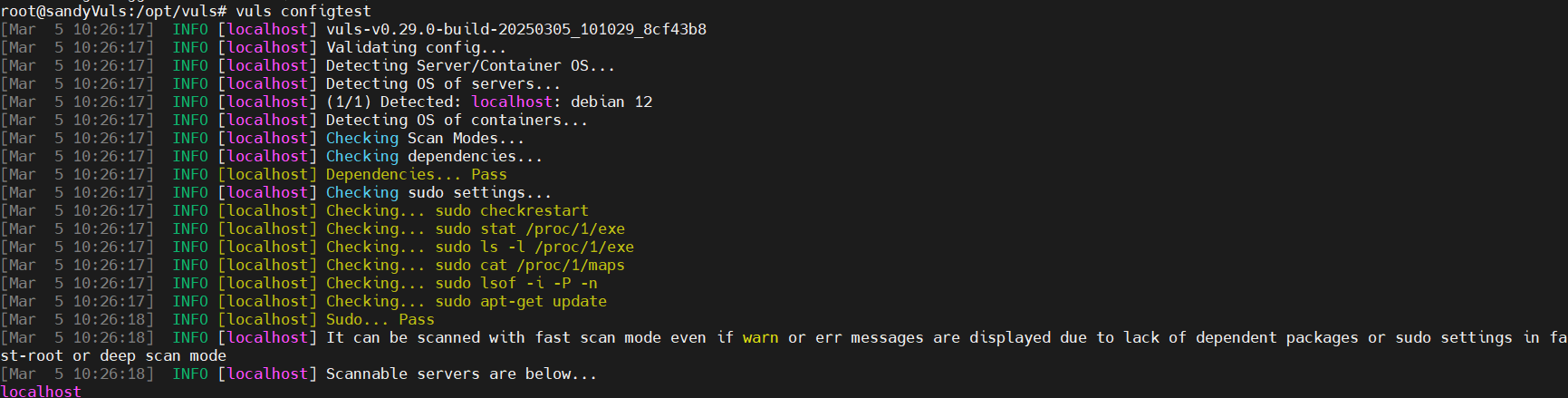 after you configured vuls and created CVE Databases, you can now ready to scan localhost with vuls