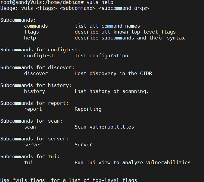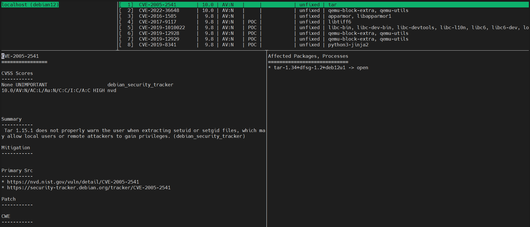 vuls is an open-source vulnerability scanner for Linux and FreeBSD, vuls is an agentless on target server, meaning that the target server no need to install agent, it can also assist system administrator and security team in identifiying security vulnerability, one of the advantage of using vuls that it could integrate with CVE Database and Security Advisory like NVD and also it could integrate with ChatOps like Slack or Discord for notifications.