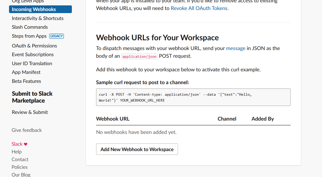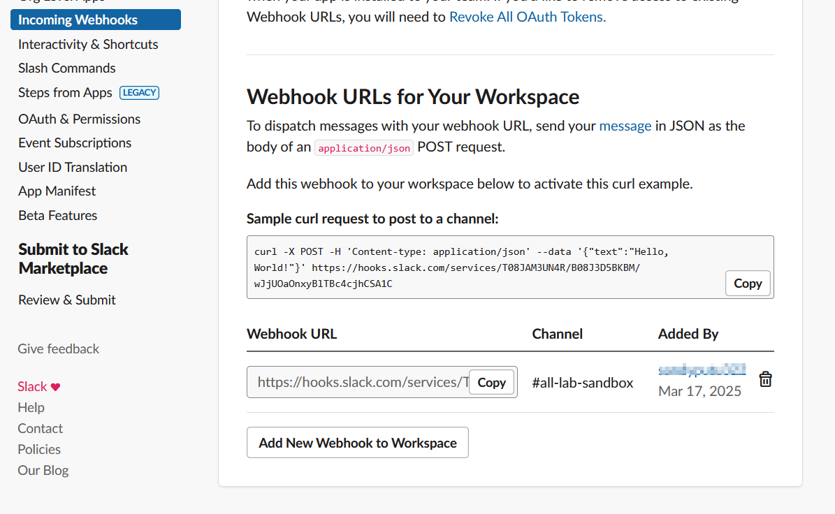 Once you have added the webhook, it will shown a Webhook URL