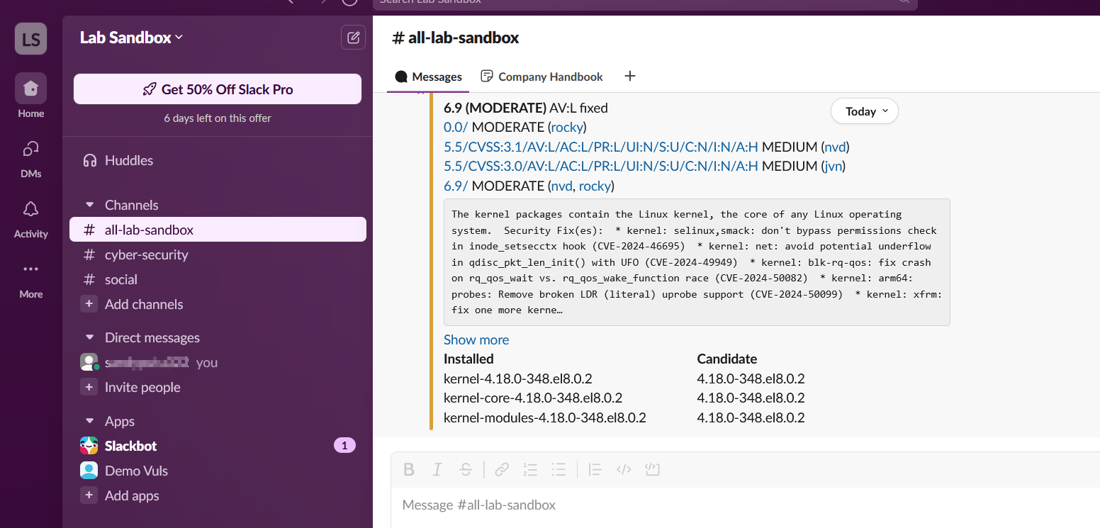 Slack is a social media conversation like discord but slack mostly used for professional, vuls also able to integrate with slack, by sending report to slack to see all the vuln and CVE's, we will config vuln so we can see the report through slack.